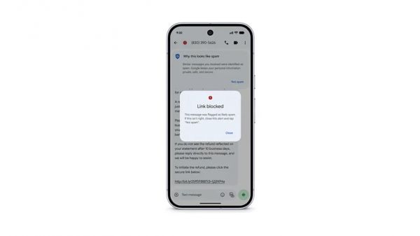 首先,谷歌重点升级了即时通讯应用的反诈能力。谷歌信息(Google Messages)应用现已在全球范围部署新功能,可自动识别并阻止用户访问信息中包含的疑似诈骗链接,从源头切断风险传播。若系统出现误判,用户也可手动将链接标记为“安全信息”以继续访问。