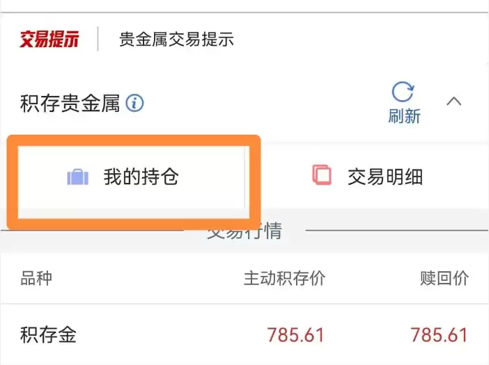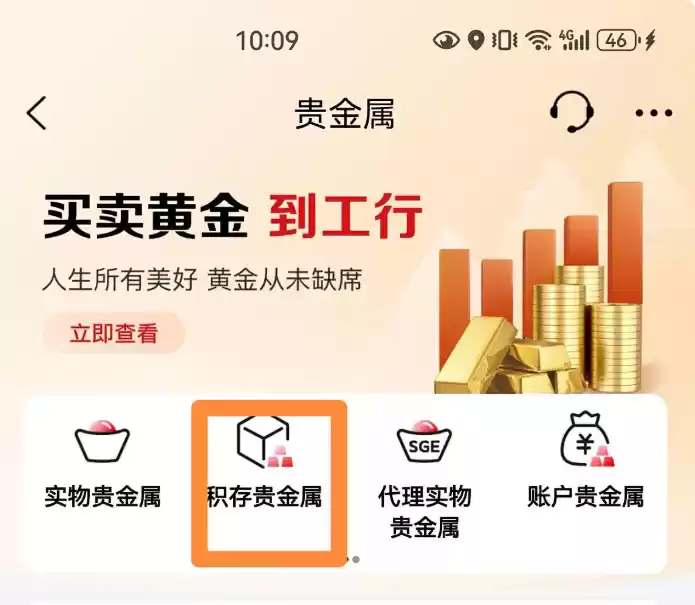 接着选择"积存贵金属"服务选项
