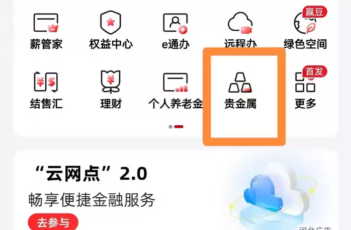 进入应用后,点击界面中的"贵金属"功能入口