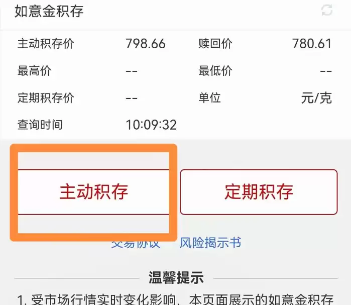 页面跳转后,选择"主动积存"交易类型