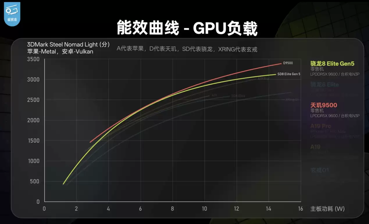 先来聊聊大家最关心的游戏表现。游戏体验是否流畅,关键要看芯片的GPU性能,这一直是天玑平台的传家宝,近几年来从未让人失望。天玑9500采用了全新的GPU架构G1-Ultra,性能提升高达33%,功耗却降低了42%,在零售机的实测中,GPU性能与能效表现全面领先,能效曲线全程压制竞品,堪称当前最强GPU实至名归。