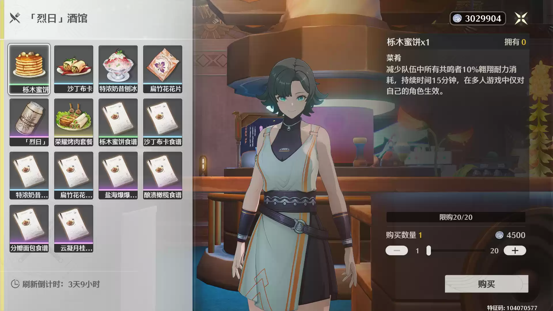 可购买菜式包含:樟木蜜饼、沙丁布卡、特浓奶昔刨冰、扁竹花花片、烈日、荣耀烤肉套餐。