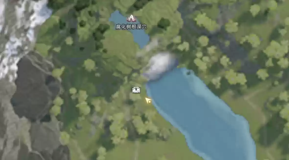 在腐化树根深穴下方的瀑布处,各位可以在靠近南岸的山体位置找到不可挖掘的石头,在附近挖掘就能获得宝箱。