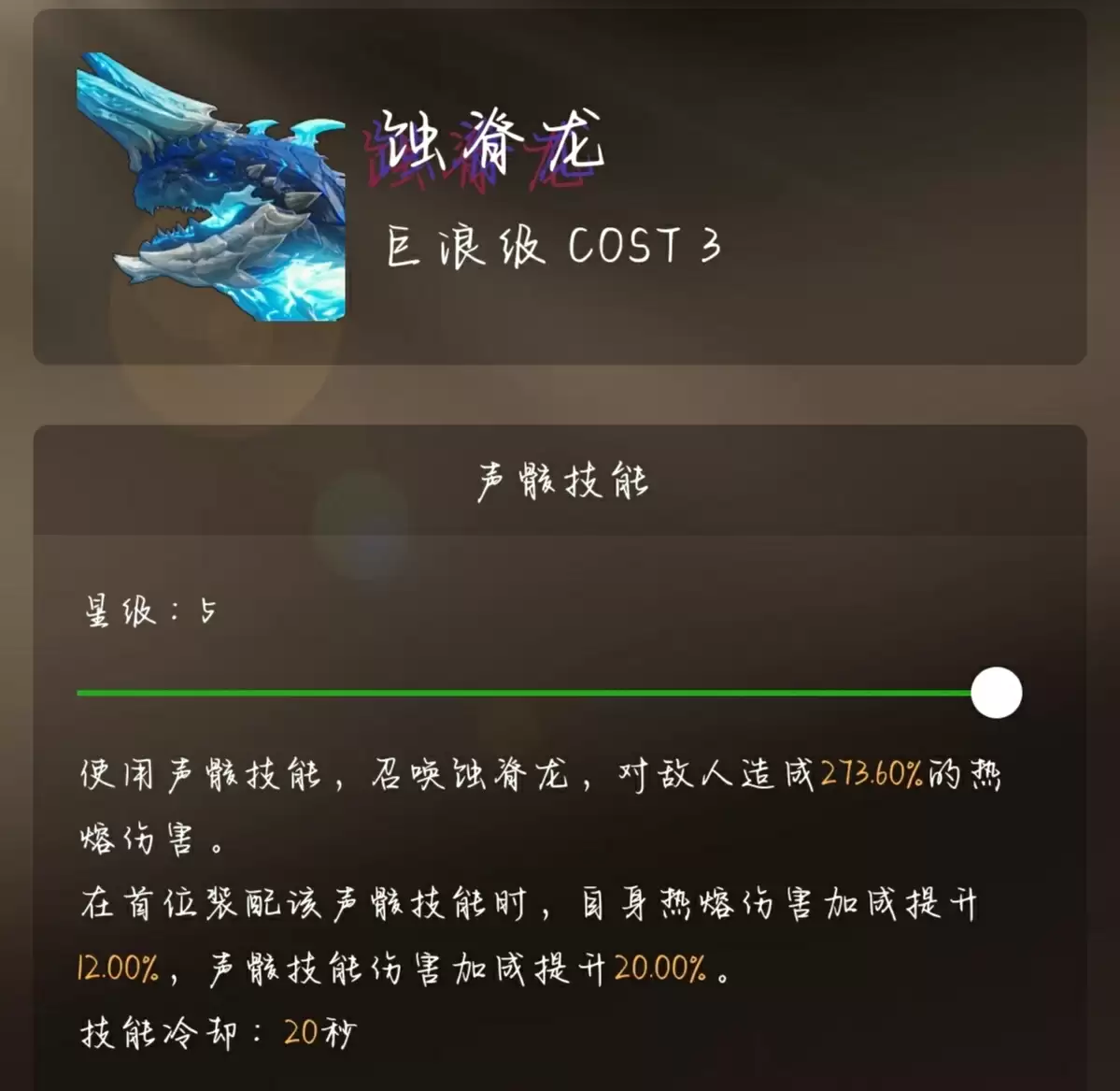 建议使用3Cost的蛰脊龙,它能同时提升热熔伤害加成与声骸技能伤害。