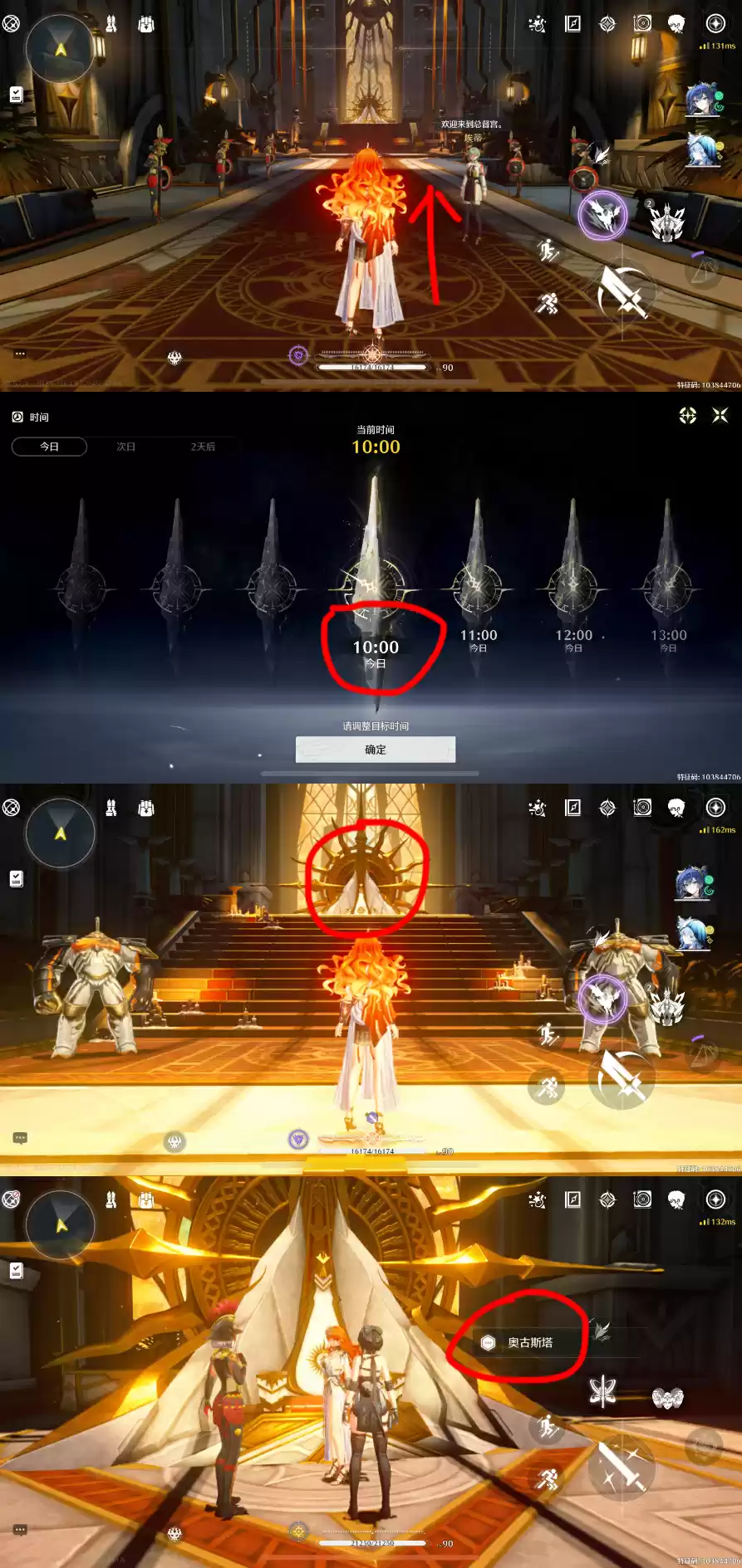 进入宫殿后,走至楼梯前,将时间调整至次日早上10:00,到楼梯尽头的太阳标志处,与奥古斯塔对话