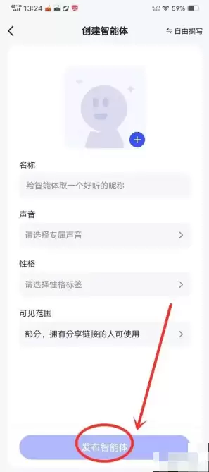 第四步:根据个人喜好,为智能体设定形象、名称、性格和声音等特性,完成设置后点击"发布智能体"即可成功创建。