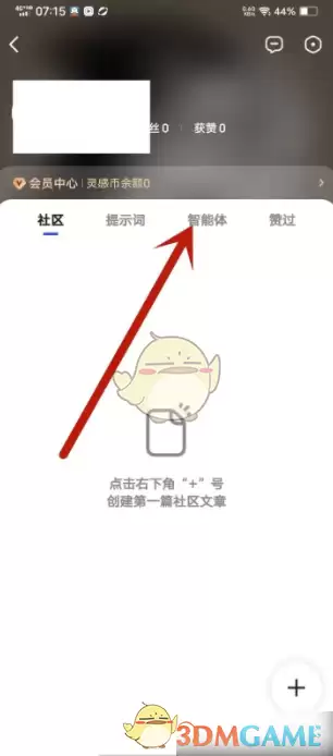 2、进入个人中心页面后,找到并点击"智能体"选项。