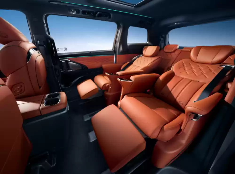 车内采用大面积软质包裹,触手可及之处皆显精致。配备的雅马哈头枕音响、5英寸液晶控制屏、皮质小桌板等配置,兼顾了商务接待与家庭出行的双重需求。