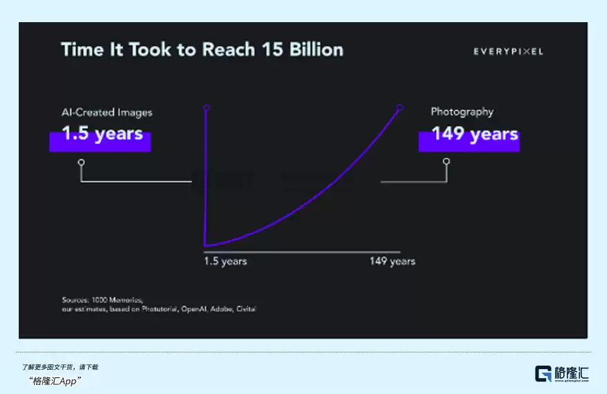 2024年的数据显示,一年半的时间内,Open AI就生成了1500亿张照片,相当于人类过去150年产生的照片总和。如今,这个数据只会更加惊人。