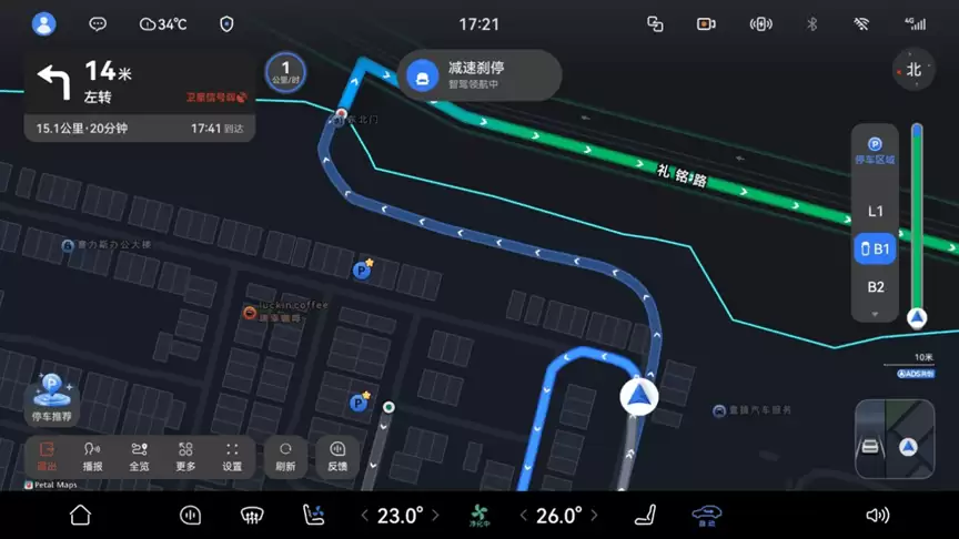 智能泊车系统迈进2.0时代革新。新上线的"车位到车位"功能覆盖全国超50万个停车场,用户可在地图界面直接点击目标车位,一键启动"车位级"导航,全程无需手动干预。该功能支持小区、商超、写字楼等高频停车场景的无缝衔接,实现从出发到停放的连贯体验。泊车辅助系统新增自定义车位记忆功能,可存储用户偏好的停车位置和姿态(如靠左停放),系统会自动适配不同车位的泊入策略。实时渲染感知界面(SR)支持"可见即可泊",当车辆低速行驶时,界面自动显示周边可泊车位,用户选定后无需切换挡位即可激活泊车,操作时间大幅缩短。