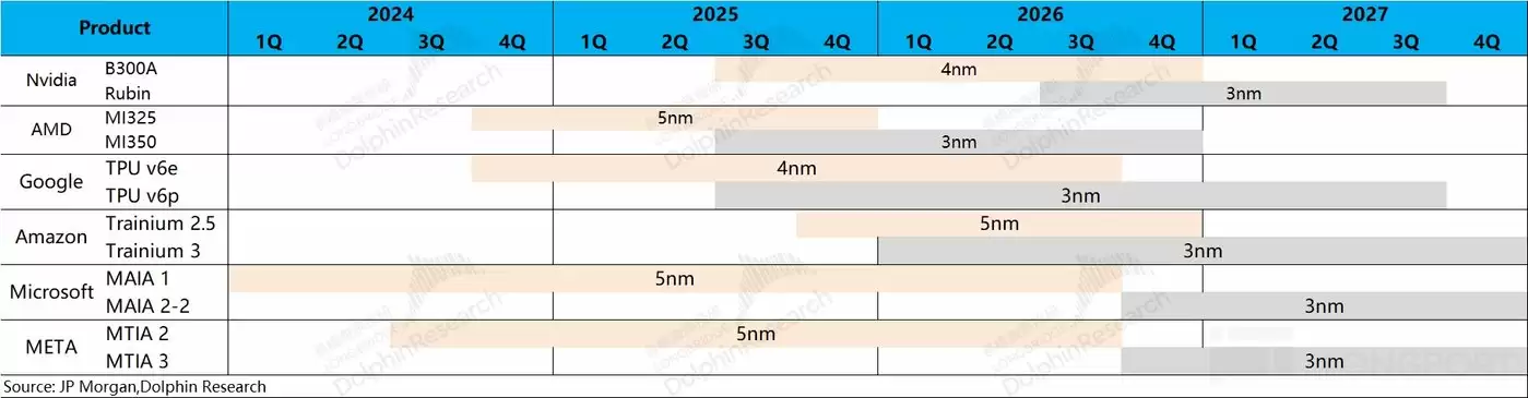 b)技术迭代:目前公司2纳米工艺进展顺利,预计2026年苹果、高通等新一代手机芯片将采用该制程。而AI芯片(博通、AMD、英伟达等)也将在2025年下半年开始从4纳米平台逐步向3纳米工艺迁移。
