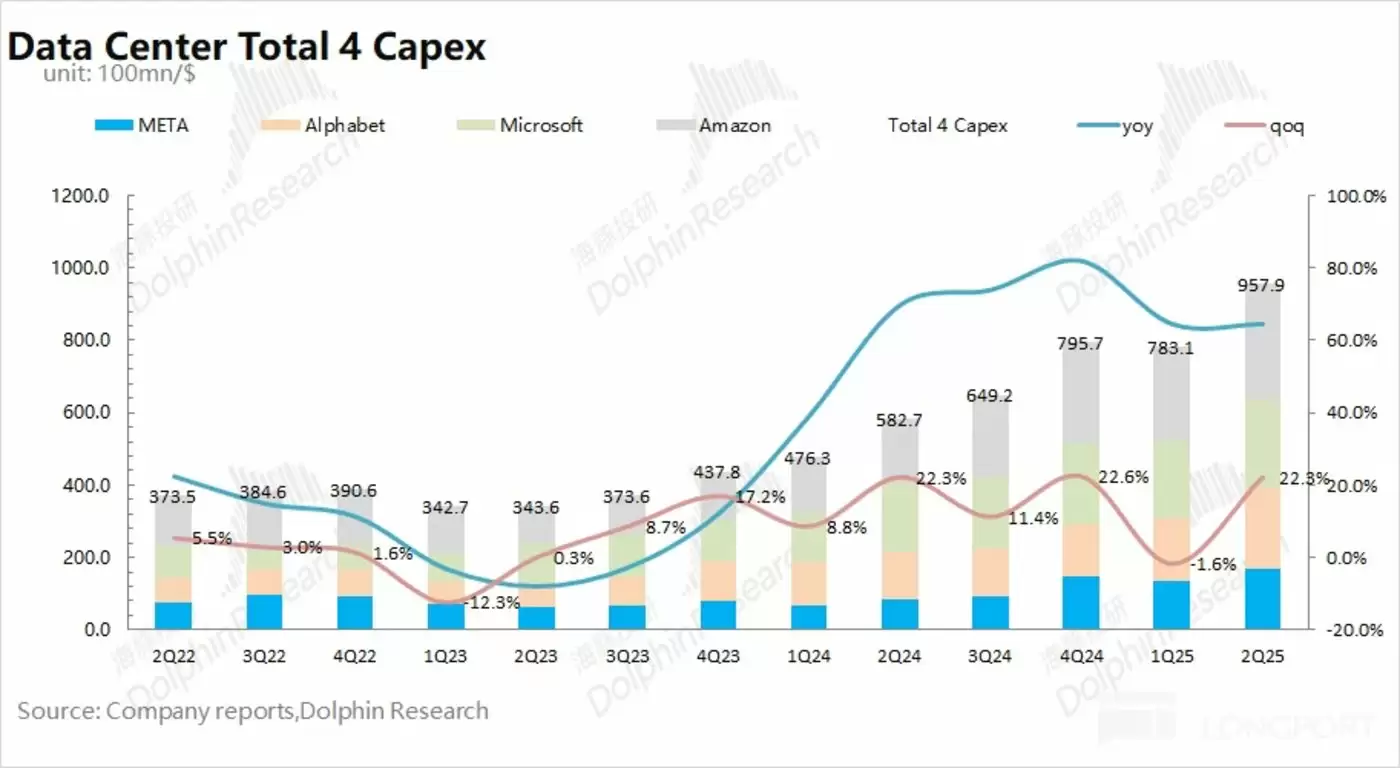 ①资本支出:本季度97亿美元的投入符合预期。公司向上调整全年资本开支目标至400-420亿美元(原为380-420亿美元),可推算出第四季度资本支出将达106-126亿美元,有望创下单季度历史新高。
