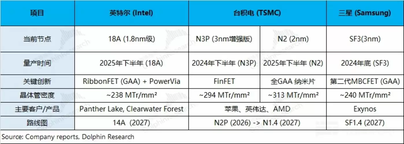 从技术路线图来看,台积电整体上仍显著领先于英特尔和三星,进一步巩固了公司在全球AI半导体产业链中的话语权。