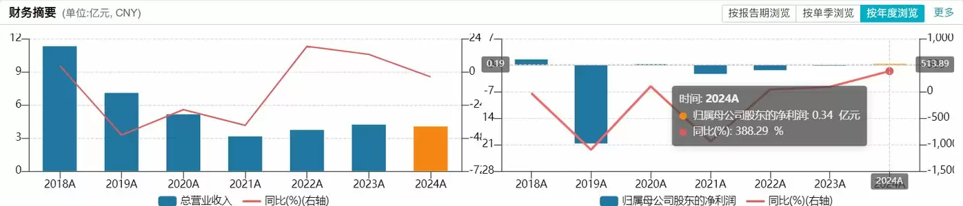亚泰药业已连亏6年,营收基本维持在4亿元左右,图源:Wind