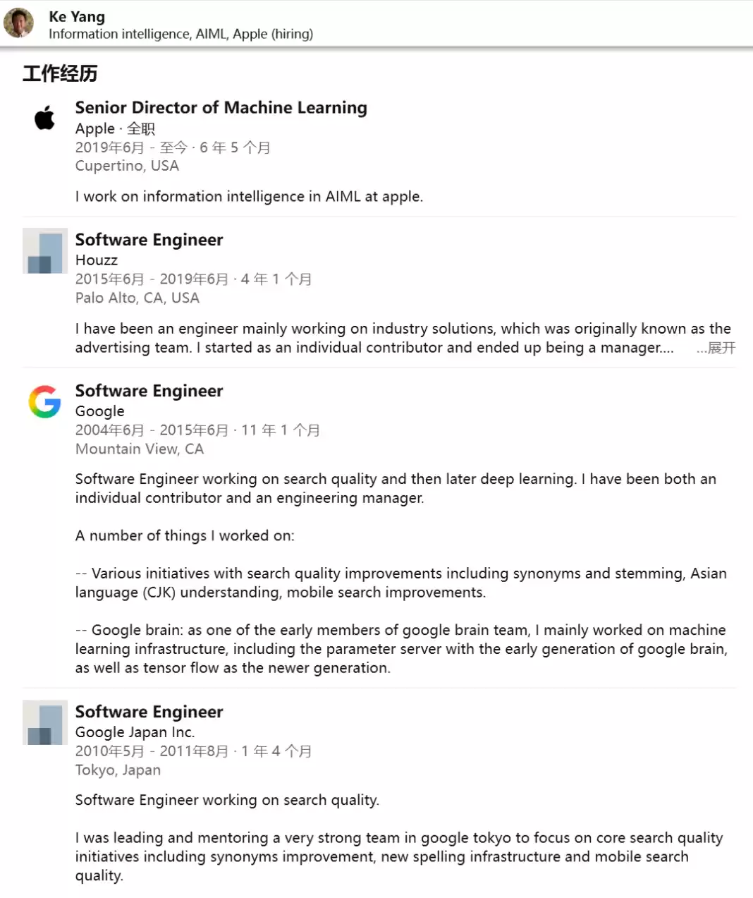 Ke Yang(杨克)在苹果负责AI搜索与问答系统研发,并于数周前被任命为内部代号为AKI(Answers, Knowledge and Information)团队负责人。