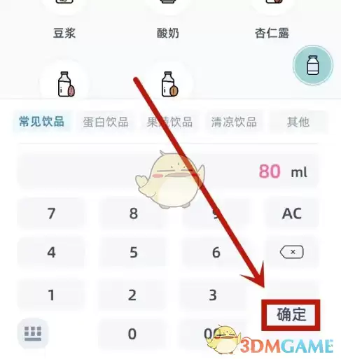 2. 进入添加页面后,选择饮品种类并输入具体容量,最后点击右下角的"确定"完成保存。