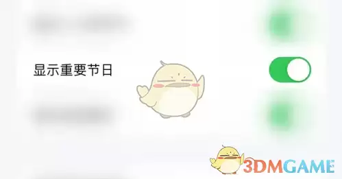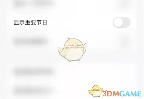 2、在设置界面中找到「显示重要节日」选项,点击右侧的圆形开关