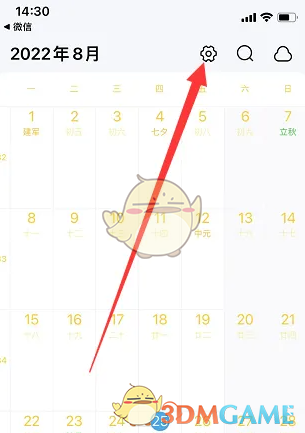 1、首先打开日历清单首页,在页面右上角点击进入设置