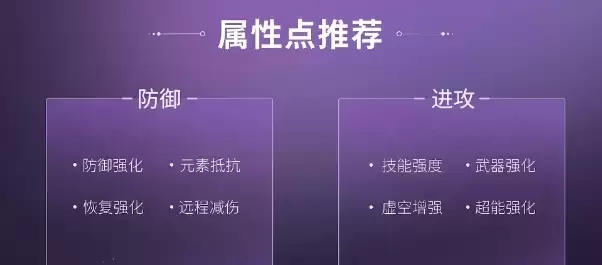 进攻属性推荐技能强度、虚空增强、超能强化、武器强化,需要注意的是前期不必过度追求极限输出。