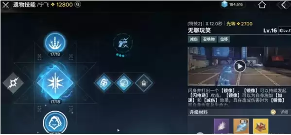 特技“无聊玩笑”是核心生存手段。通过闪现创造镜像,镜像会持续攻击并为宁飞提供加速与减伤效果,同时为双方恢复生命值。