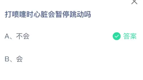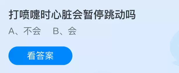 打喷嚏时心脏会暂停跳动吗?支付宝小鸡课堂开课啦!每天花一分钟答题赚饲料,喂养小鸡就能贡献爱心哦!整个过程轻松愉快且充满意义!2025年10月17日蚂蚁庄园的小鸡课堂题目正确答案是【不会】,打喷嚏时心脏不会停止跳动,但可能出现短暂的心律变化。
