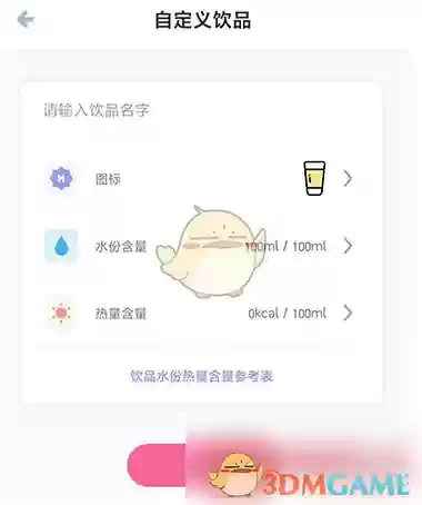 4、依次输入饮料名称,设置个性化图标、水分含量和热量数值等重要参数,最后点击完成按钮即可成功添加。