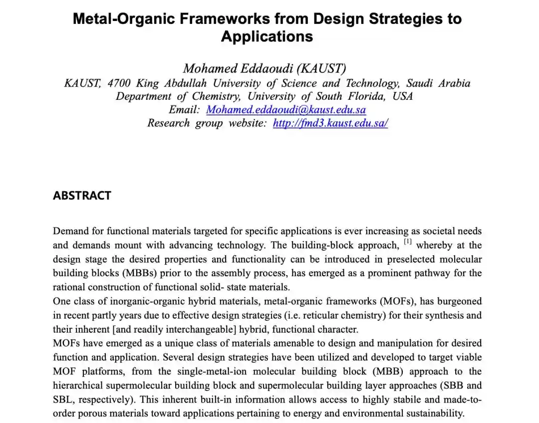 如今MOF材料的意义早已超越传统材料科学范畴,正推动人类进入精准设计物质的新纪元。当科学家在分子尺度上发现了这种可编程的三维空间,化学研究便从经验探索阶段迈入了理性设计时代。