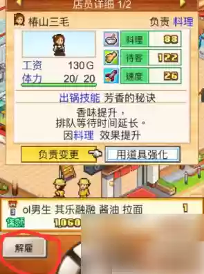 1、玩家可以让员工参加各类比赛,获得优胜或取得更好排名就能得到奖励,这些奖励包括拉面成分调味料和升级员工道具等。