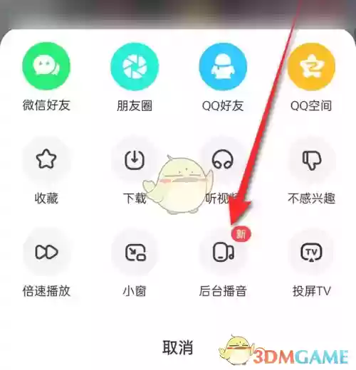 2、当"后台播音"图标显示为选中状态(呈现红色)时,表示视频切换到后台后仍会继续播放声音,此时需要点击该图标。