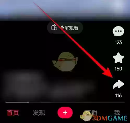 1、进入好看视频应用,播放任意视频内容,在播放页面点击右上角的分享图标。