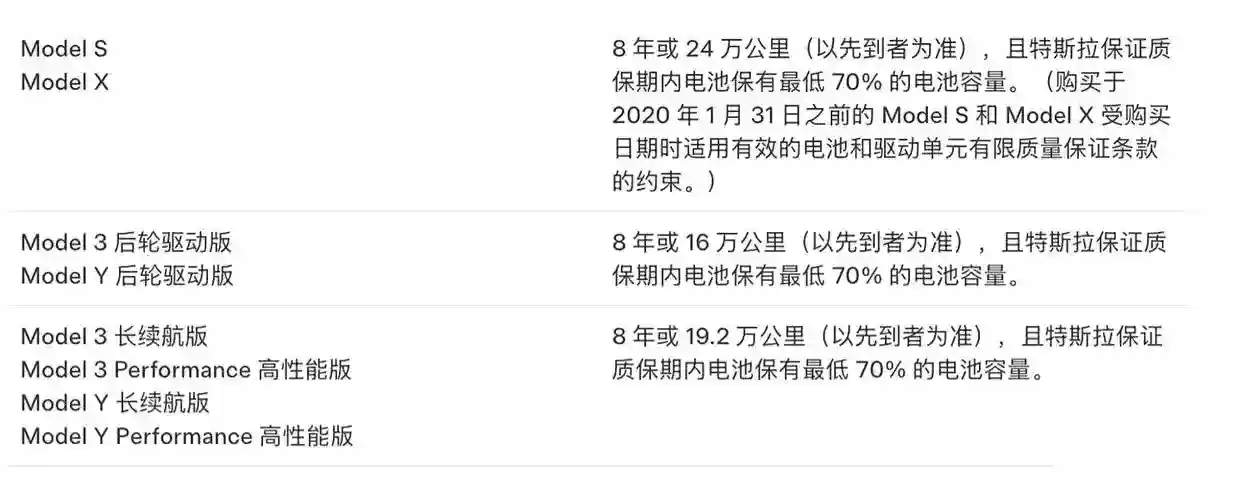 根据特斯拉中国保修政策,Model 3/Y标准续航版享受8年或16万公里质保,Model 3/Y长续航/性能版为8年或19.2万公里,Model S/X则提供8年或24万公里保障。若在质保期内电池衰减超过30%,且非人为损坏,可申请免费更换电池。