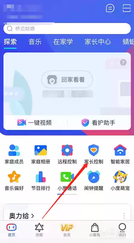 第二步:成功登录小度账户后,在主界面找到并点击"家长控制"功能模块