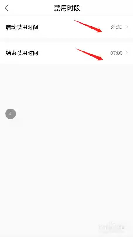 第四步:在禁用时段设置界面,根据您的作息需求分别设定开始禁用和结束禁用的具体时间点