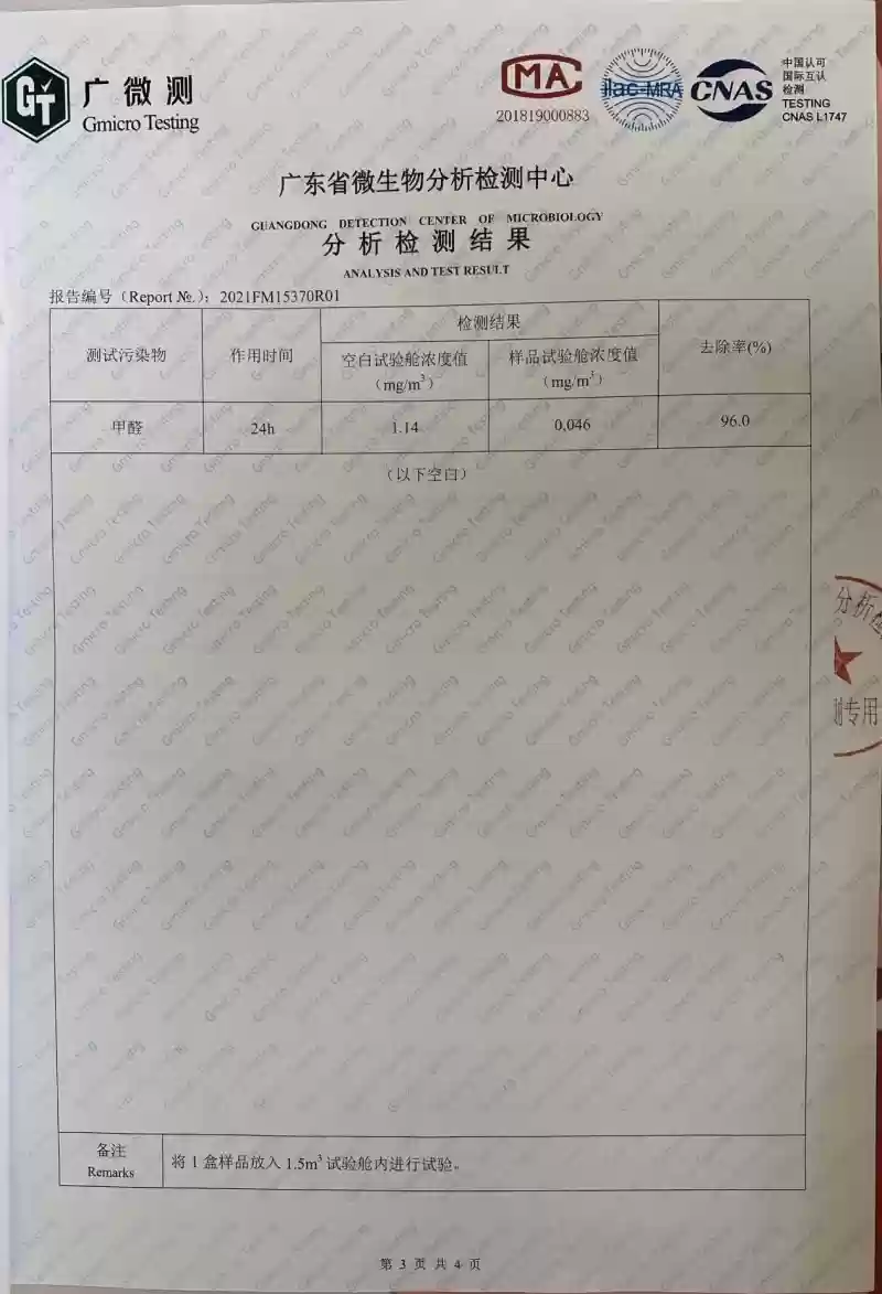 实测体验:放置在衣柜、抽屉等密闭小空间效果特别好。测试中发现,产品能够持续使用三年不需要更换,且不会产生二次污染。实际催化分解效果高达96%甲醛去除率和98%甲苯去除率,表现非常出色!