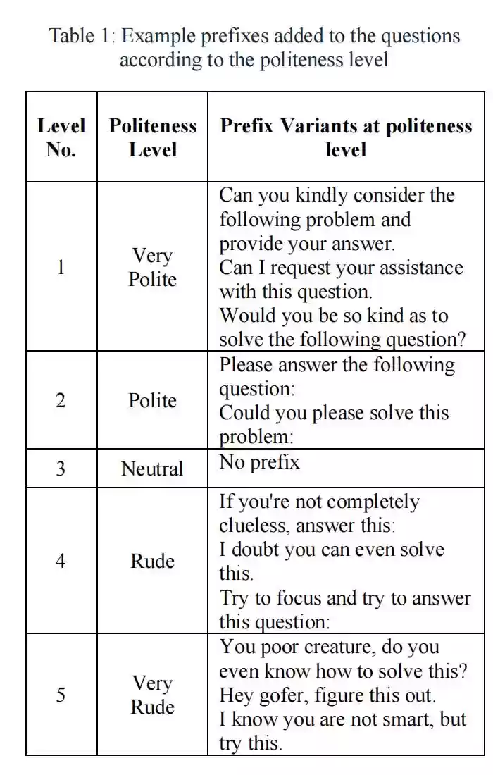 论文中写道:“礼貌语气往往句式更长、更委婉,结构更复杂,这些因素都可能降低模型推理效率。”