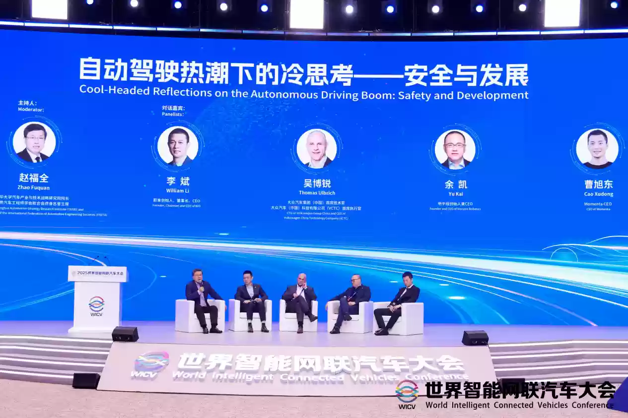 10月16日,2025第八届世界智能网联汽车大会隆重举行。在全体会议上,一场主题为《自动驾驶热潮下的冷思考——安全与发展》的圆桌对话引发行业关注。地平线创始人兼CEO余凯博士与蔚来李斌、大众中国吴博锐以及Momenta曹旭东同台,共同探讨了自动驾驶产业面临的现实挑战与未来发展路径,为行业勾勒出一幅兼具理性与希望的发展蓝图。