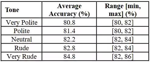 结果呢,"非常礼貌"的版本,准确率是80.8%。