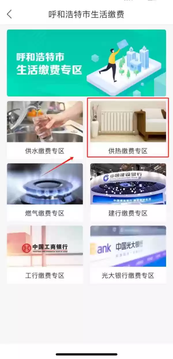 第四步,以呼和浩特市为例,进入相应盟市的生活缴费页面后,点击“供热缴费专区”。您只需按照页面提示即可完成线上供热缴费。