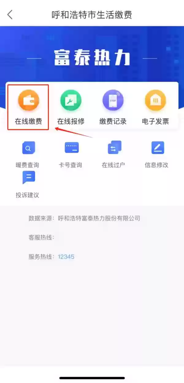 第五步,以呼和浩特市为例,在“供热缴费专区”按页面提示选择您需要办理的供热服务,然后根据操作指引完成后续步骤即可。