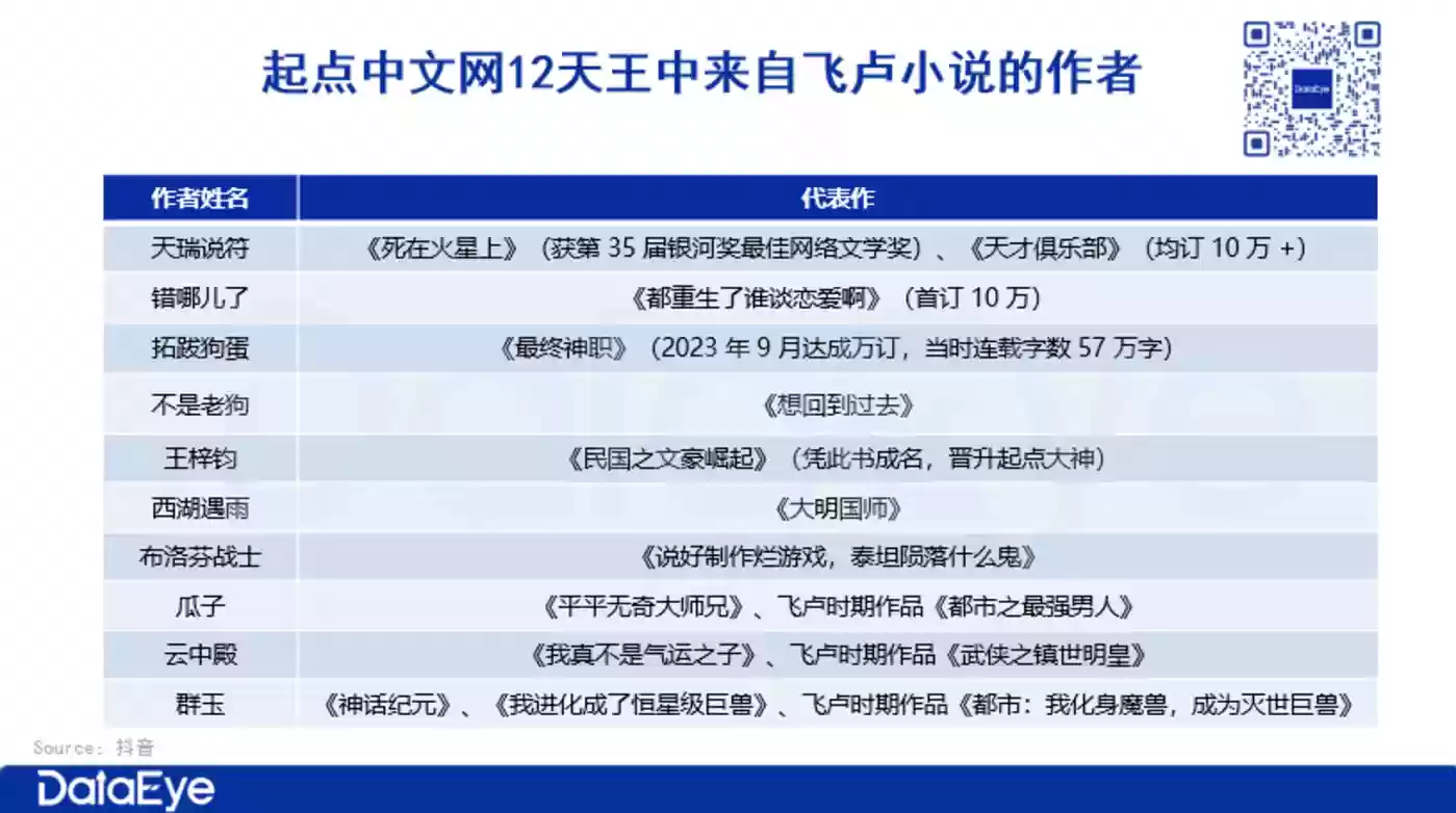 其二,行业影响力显著。飞卢被誉为网文界"黄埔军校",番茄黑马榜60%的作者(如愚狂大叔、开心的咸鱼、我不吃荷包蛋等)、起点12位天王中10位均源自飞卢,其内容创作能力获全行业认可。