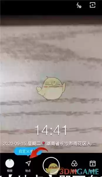 首先打开【水印相机】客户端,然后点击允许水印相机访问位置权限,此时拍照页面就会显示你的位置,点击底部的【地点】,就可以自定义位置信息。