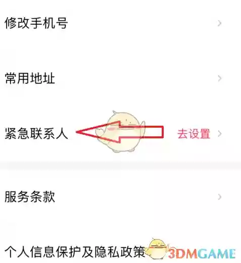 3、在设置页面中找到并点击【紧急联系人】选项