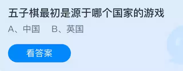 支付宝蚂蚁庄园:五子棋发源地是中国,10月18日揭晓答案