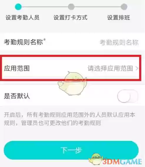 4. 选择应用打卡范围,根据实际需求进行相关设置。