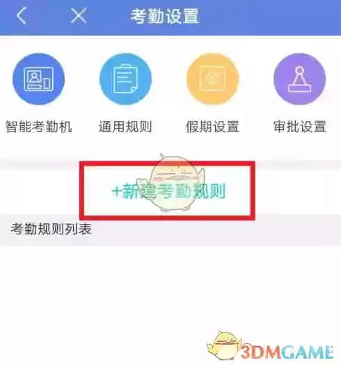 3. 在考勤设置页面中,新建对应的考勤规则。