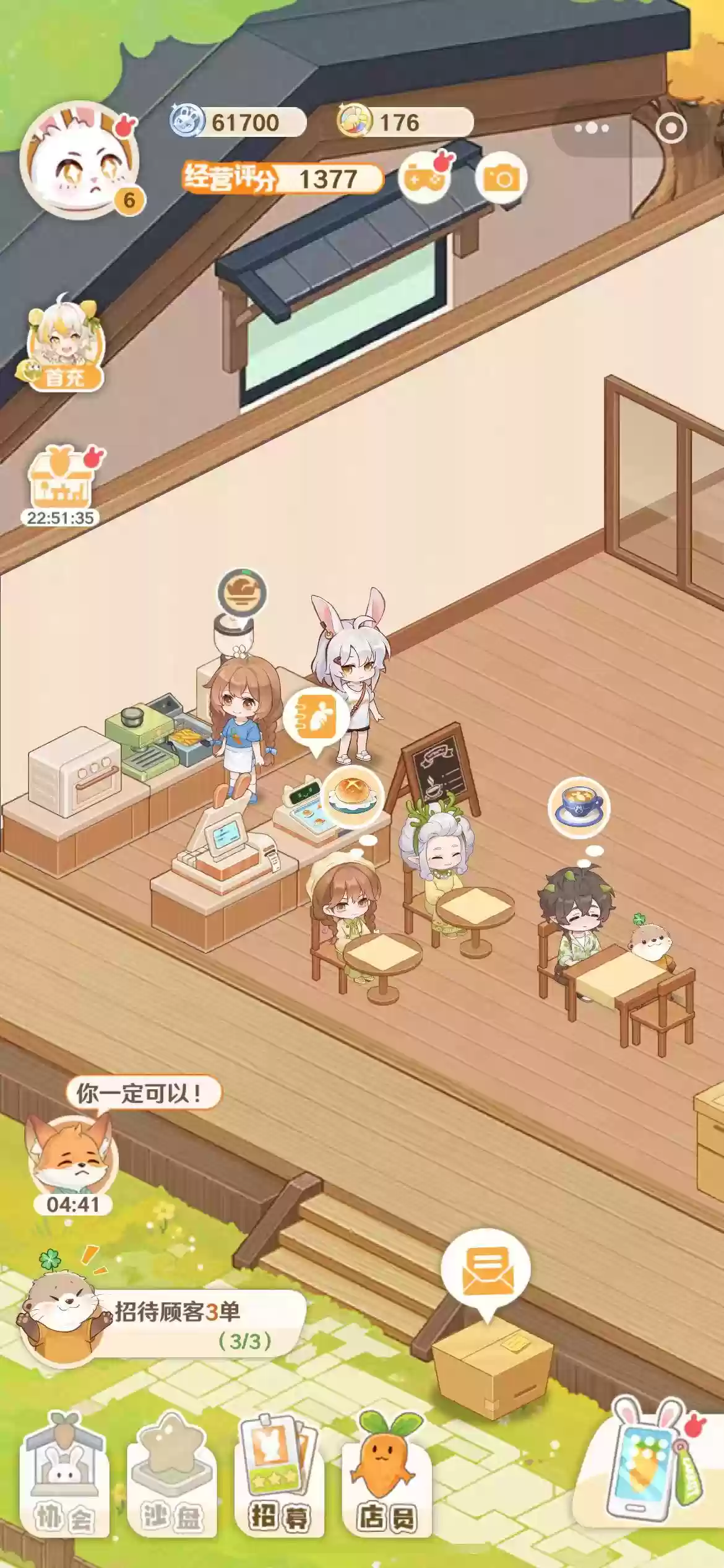 无论是通过自身厨艺的提升,还是整体员工厨艺值的增长,都能在小店升级到9级时成功触发解锁条件。生意火爆时,整个店铺的入住率最高可达80%,自身的移速会增加至400%,这样高效的工作状态将持续一分多钟,收益金额将会源源不断涌入。完成协会订单也很重要,每完成一单协会订单就能获得食谱秘料,丰富店铺内食品的种类。