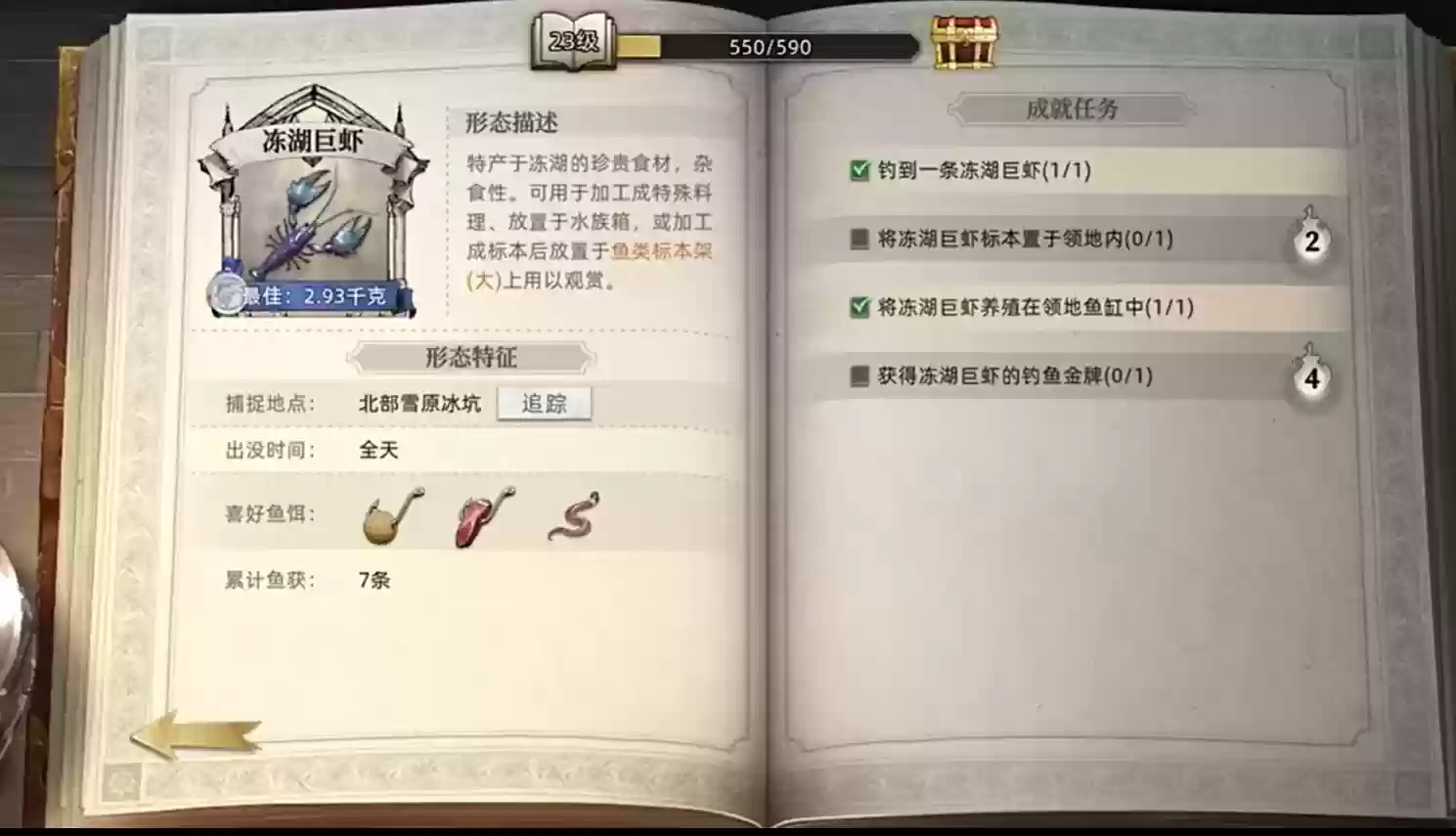 当然,你也可以选择直接把家搬到冰坑附近,方便存放渔获和补充鱼饵。这样即使在钓鱼时因低温倒下,也能快速回来拾取掉落物品然后继续垂钓。另外,如果玩家在冰坑中钓到的渔获足够多,并且所有鱼种都达到了银牌以上评价,就能开启自动钓鱼模式,解放双手,让系统帮你钓冻虾。