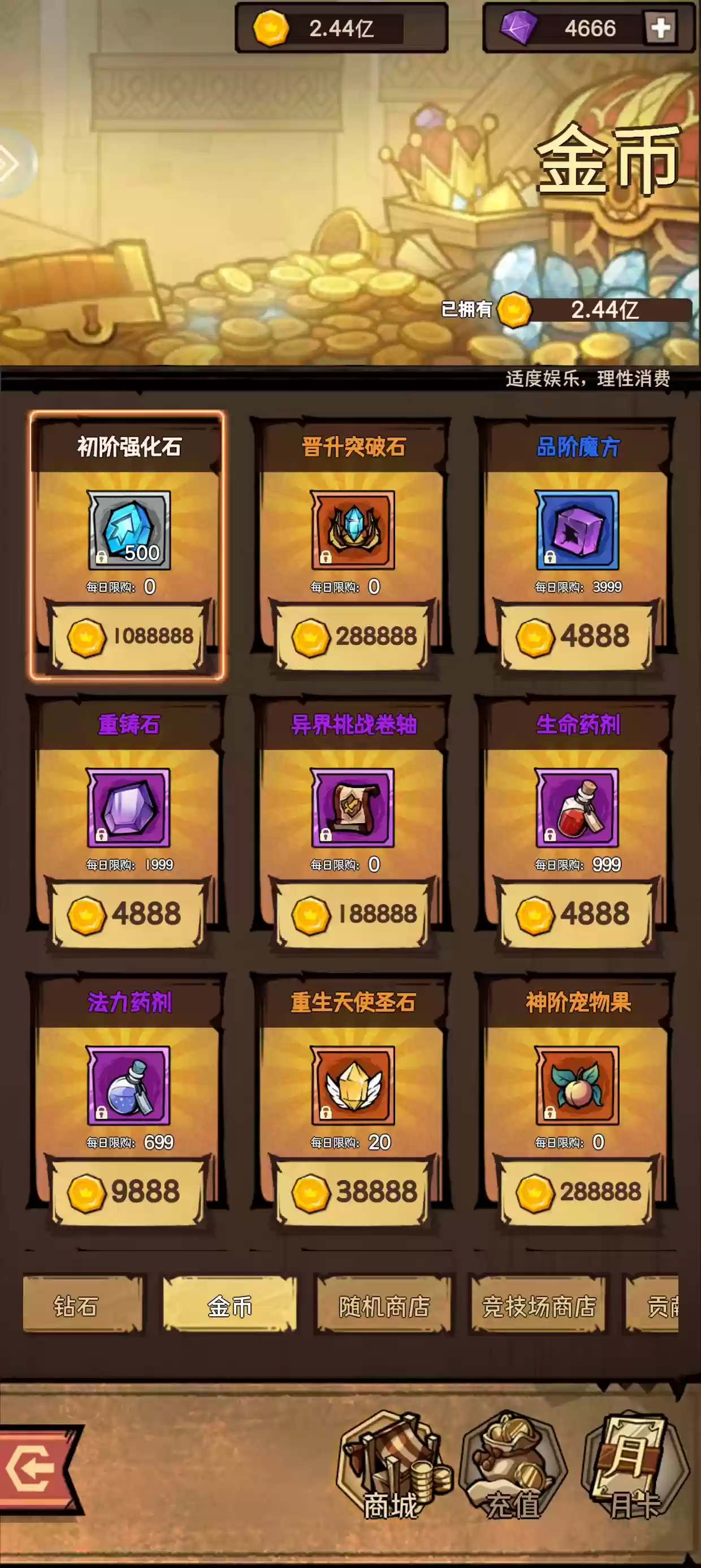 金币商店与随机商店出现的晋升突破石务必全部购入。