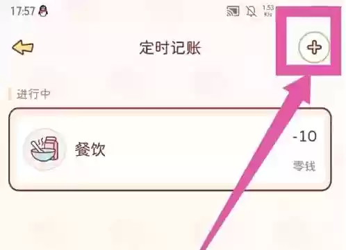 第三步:进入定时记账管理页面后,注意查看右上角的加号图标,点击它开始创建新的定时记账任务。