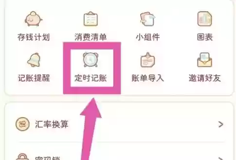 第二步:在个人中心界面,往下滑动找到"定时记账"功能入口,点击进入设置页面。